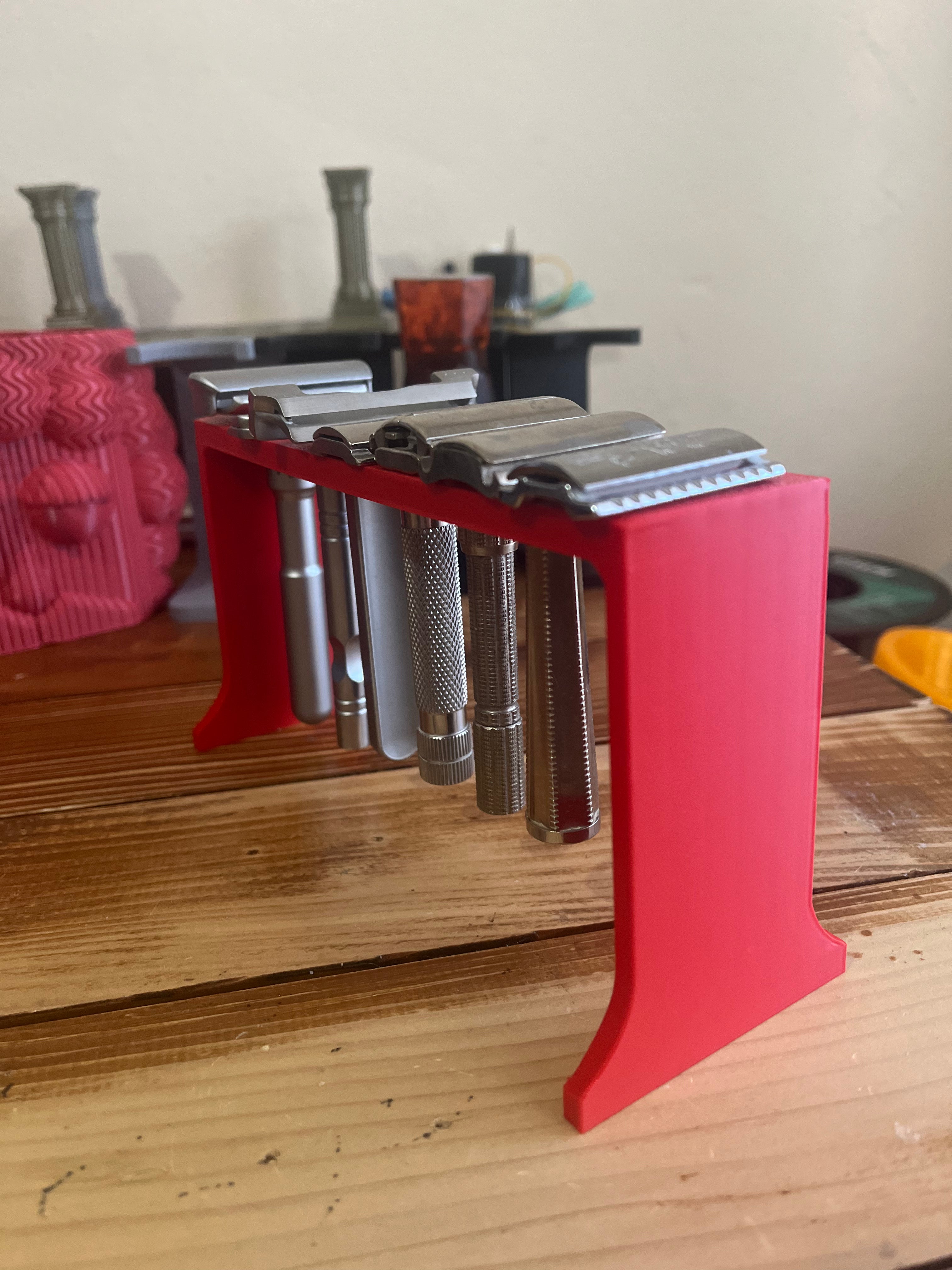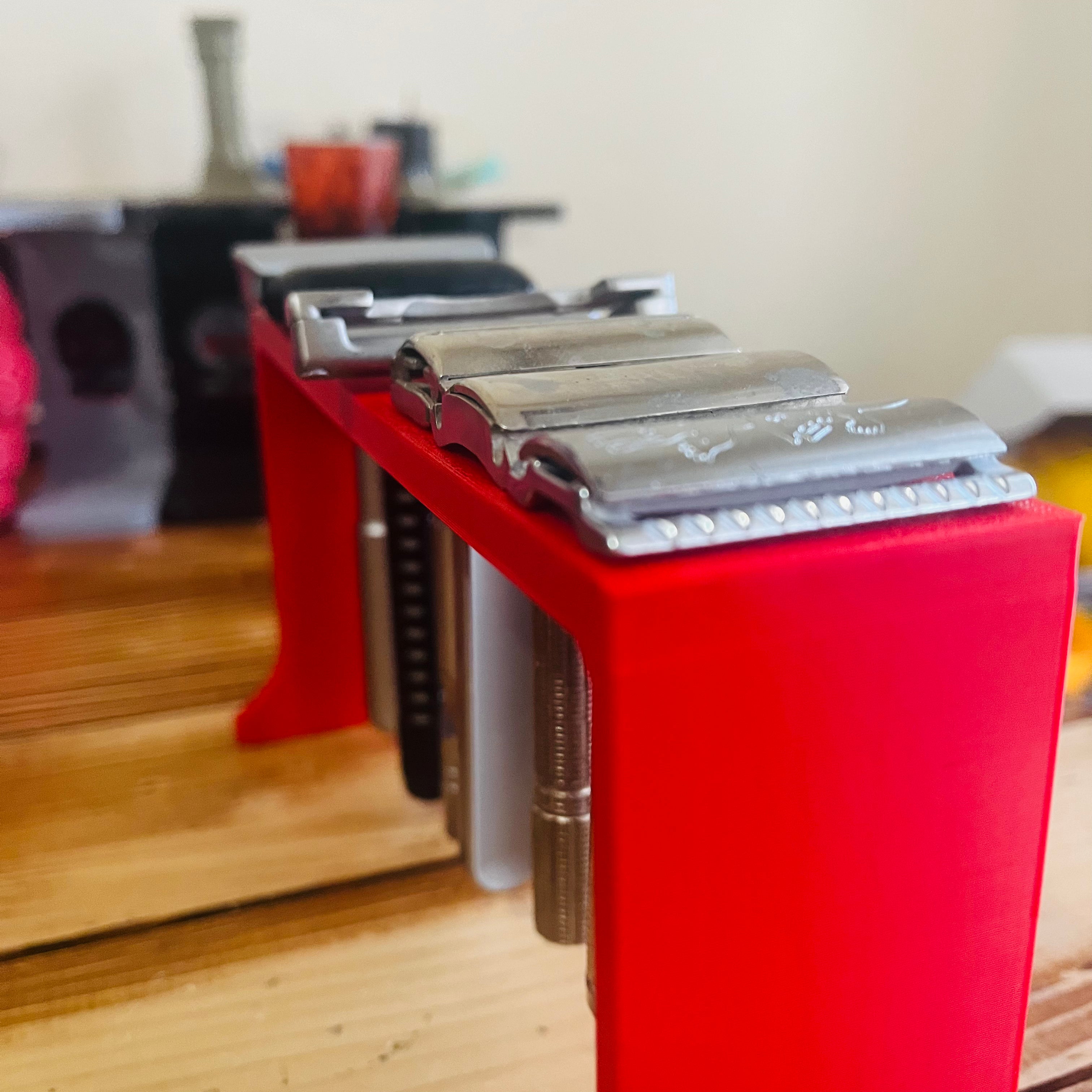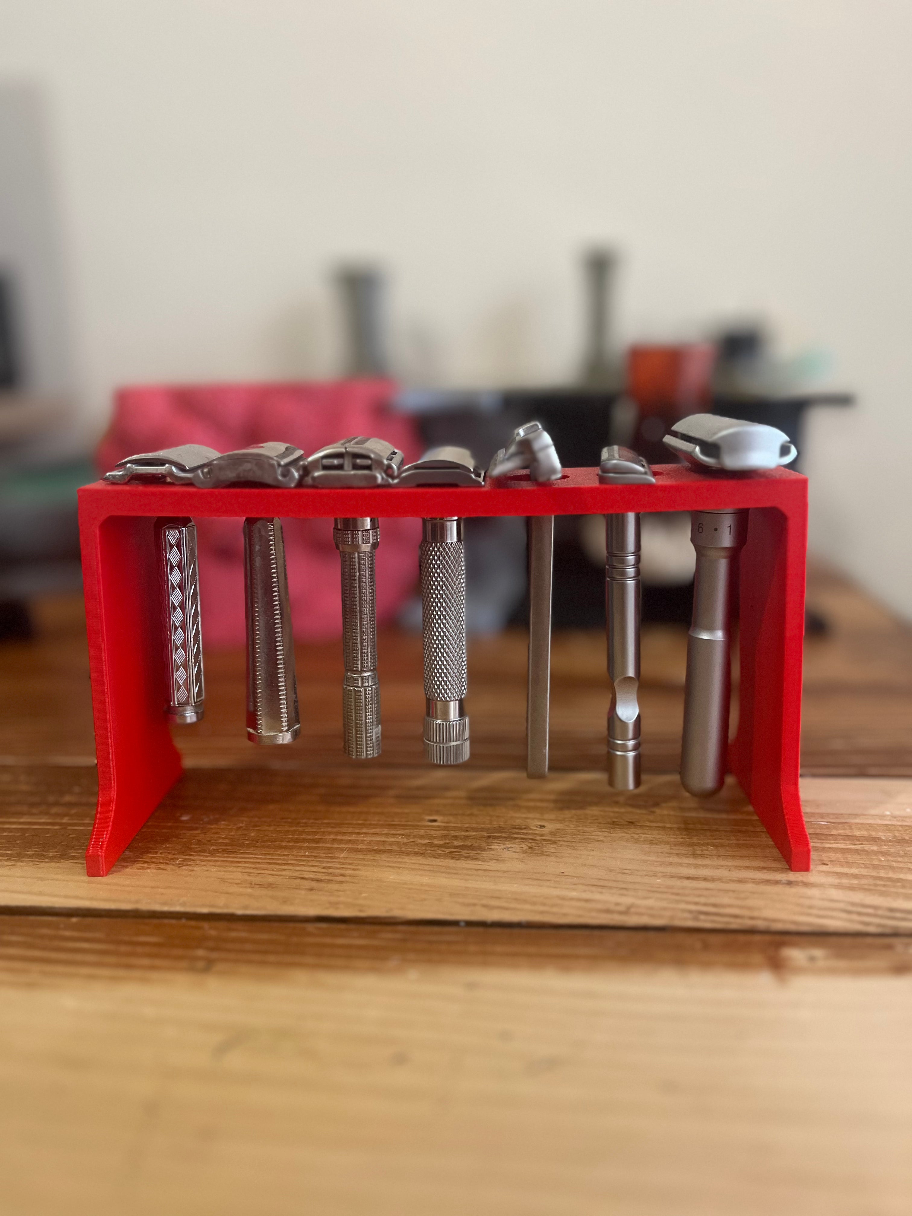 This is a very good razor stand for use in limited spaces. It can hold 7 razor.